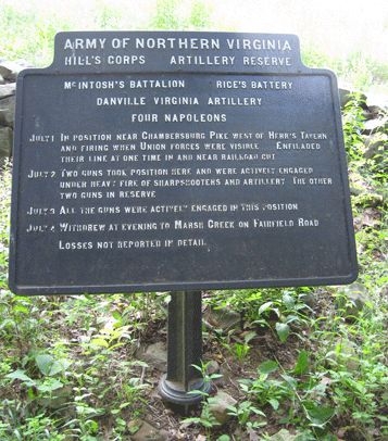 July 2 Two guns took position here and were actively engaged under the heavy fire of Union Sharpshooters and artillery. Two guns of the Battery were in reserve.